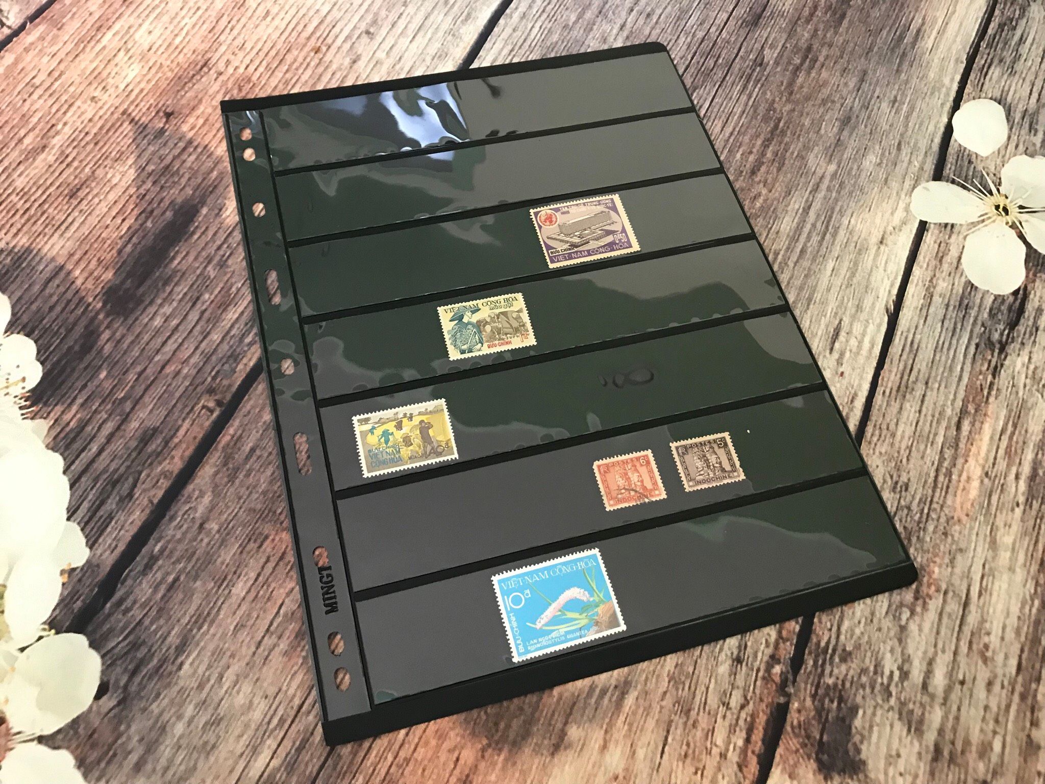 Kích thước phơi đựng tem nằm trong khoảng tiêu chuẩn 215mm x 280mm. Trong đó mỗi một ngăn đựng tem được sản xuất theo kích thước 197mm x 35mm. Bên ngoài phơi đựng tem có màu đen đặc trưng mang đến vẻ đẹp sang trọng.