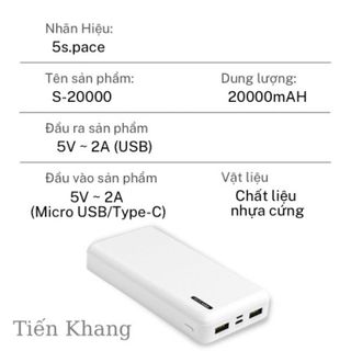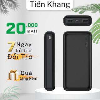 Pin sạc dự phòng 20000mah công suất 15W --- Cục pin dự phòng 20000mah có công suất đến 15w giúp cải thiện thời gian sạc pin. Pin dự phòng còn có đến 4 ổ cấm Gồm 2 ổ vào Micro/TypeC và 2 ổ ra usb ----- Cục sạc được bảo hành 120 ngày nên quý khách yên tâm về chất lượng sản phẩm