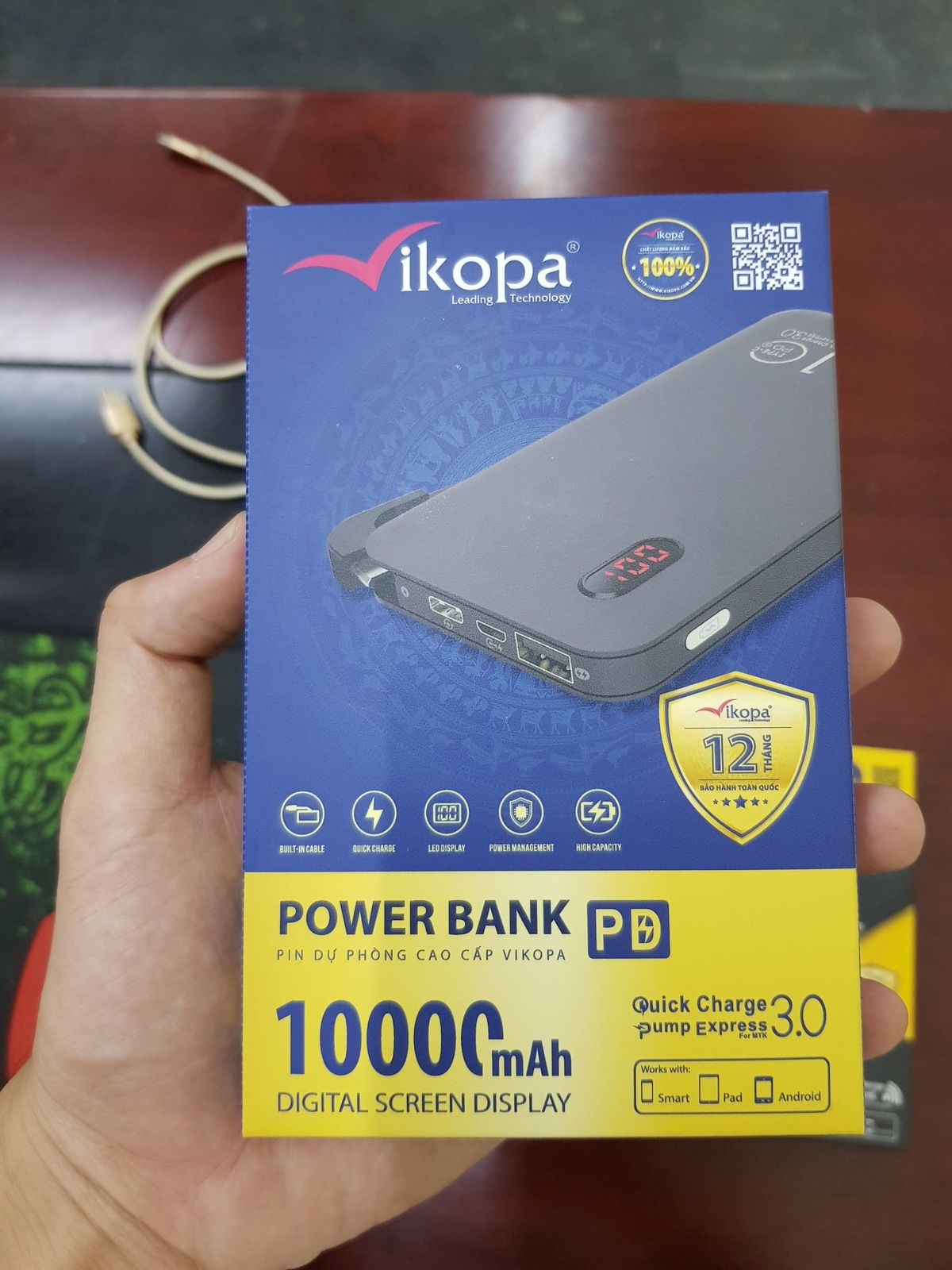 Vikopa Power Bank 10.000mAh hay pin sạc dự phòng QC 3.0 Vikopa được ra mắt với công nghệ Sạc nhanh QC 3.0 đem lại hiệu quả bất ngờ.