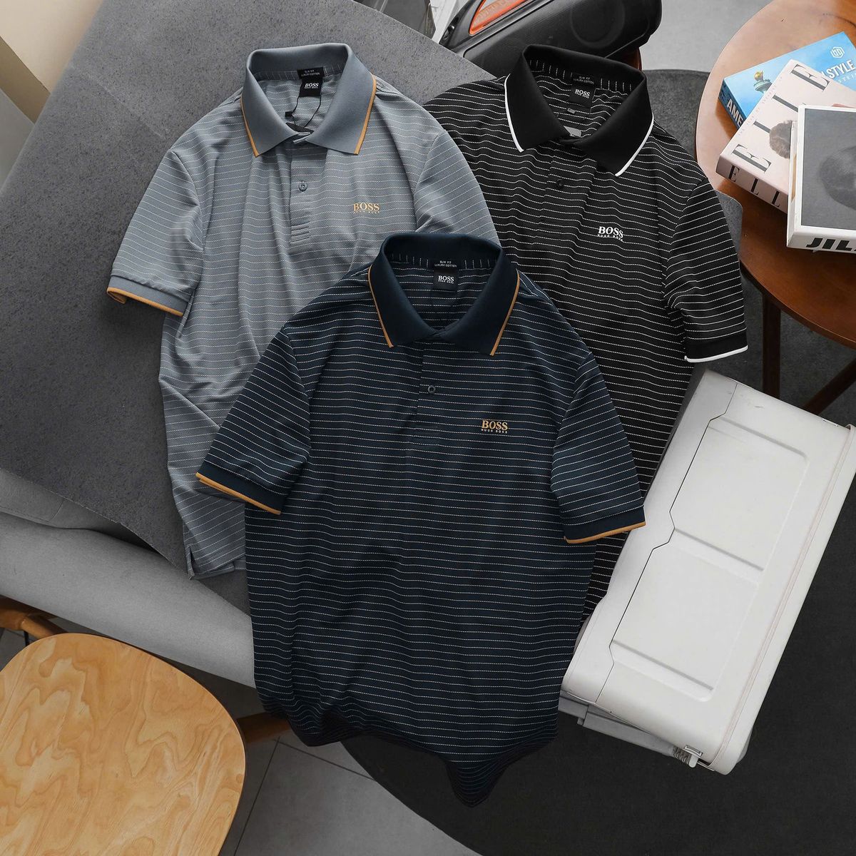 Polo nam.  Chất vải Rayon sọc dệt tuyến tính tạo hoạ tiết nổi bật. Vải co giãn 4 chiều cao cấp, ko nhăn, mềm, mướt.