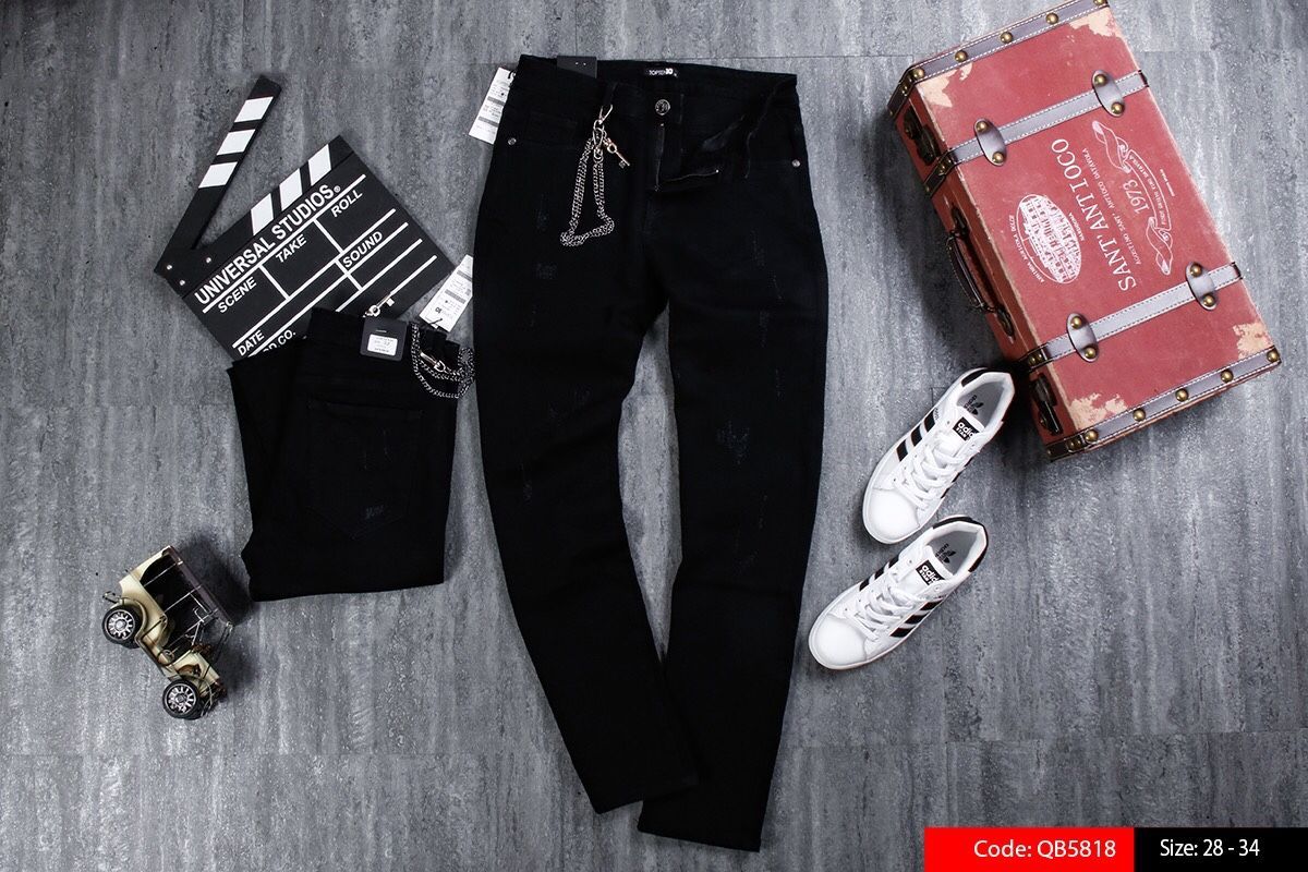 QB5818 Quần bò đen xước nhẹ kèm xích giá sỉ/bán buôn