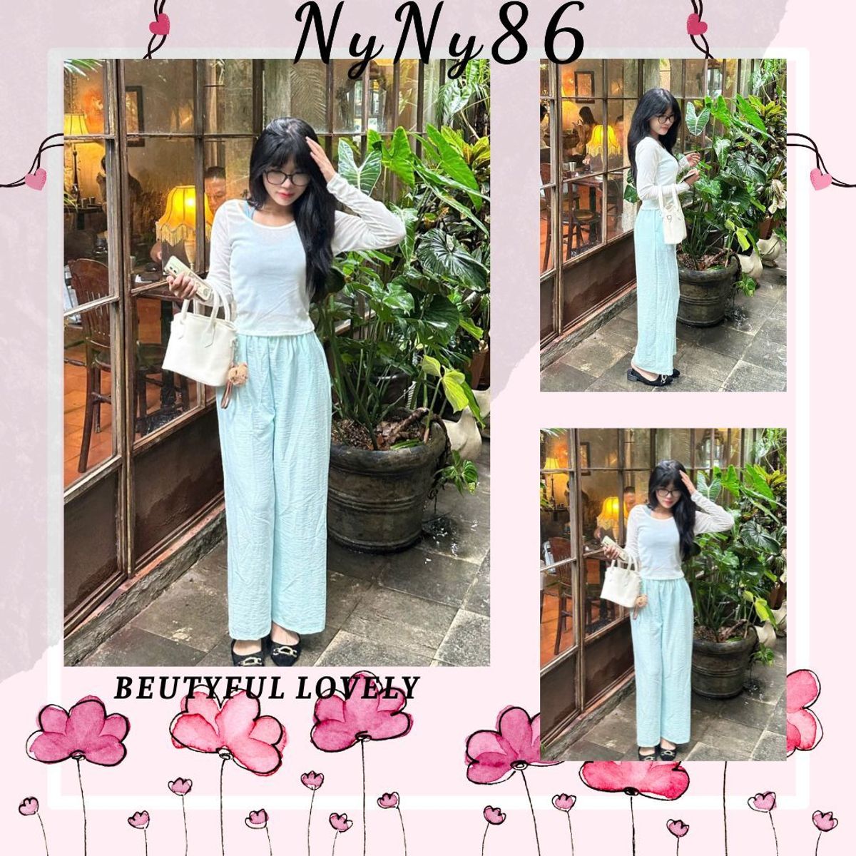 QC90 set đồ nữ áo cặp thun giấy phối quần đũi dài xinh xắn cho các nàng diện đi chơi đi tiệc Freesize 40-55kg giá sỉ/bán buôn