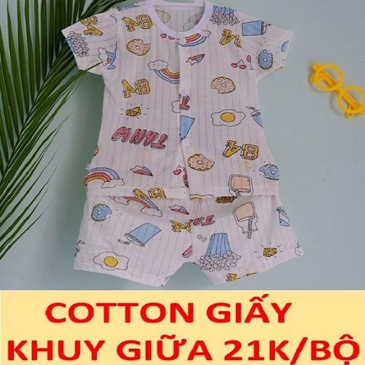 Bộ quần áo trẻ em cotton giấy noubaby được làm từ vải Quảng Châu chất mềm mại, co dãn tốt, thấm hút mồ hôi, cực kỳ thoáng mát, chất liệu cotton tự nhiên, đặc biệt an toàn cho trẻ sơ sinh. Bộ cotton giấy được gia công trực tiếp tại các xưởng lớn tại Việt Nam nên có giá thành rẻ, đảm bảo nên đang được ưa chuộng và sử dụng rộng rãi tại Việt Nam hiện nay. Tại các chợ và siêu thị bộ cotton này có giá trung bình từ 40-50 nghìn đồng/bộ.