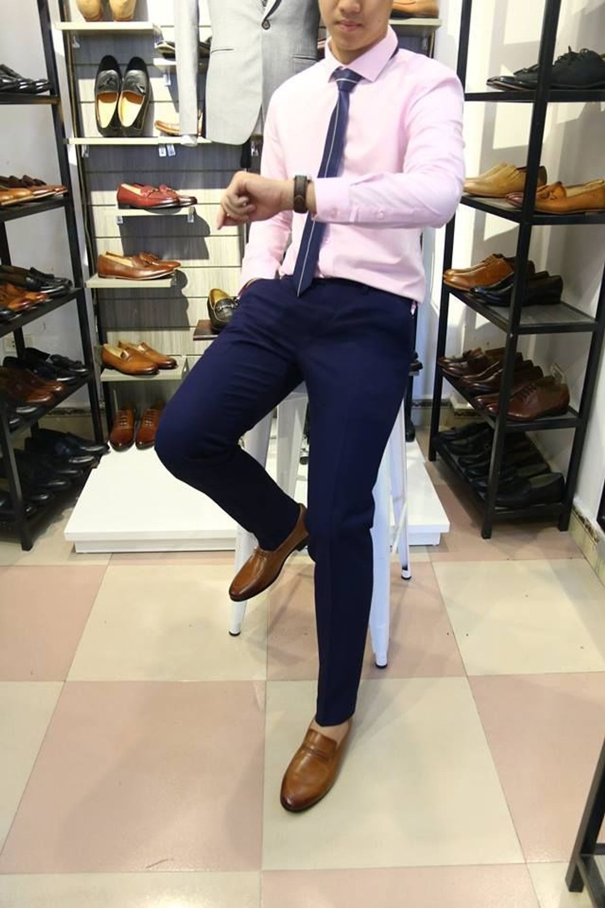 6. Ống quần : Độ rộng của ống quần có tỷ lệ với độ rộng gối và độ rộng của đùi. Gấu quần chỉ rộng = 1/2 chiếc giầy bạn đi khi bạn đứng thẳng là hợp lý nhất…