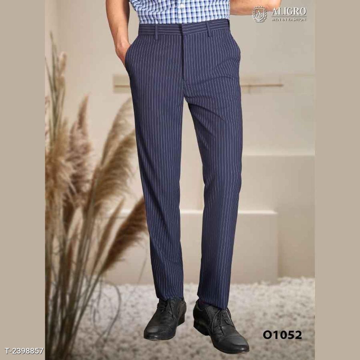 Quần âu nam vải Polyester cao cấp, Quần vải nam dáng ống đứng màu Navy kẻ trắng/xanh slim thiết kế đứng dáng mang đến cho phái mạnh phong cách lịch lãm, nam tính.