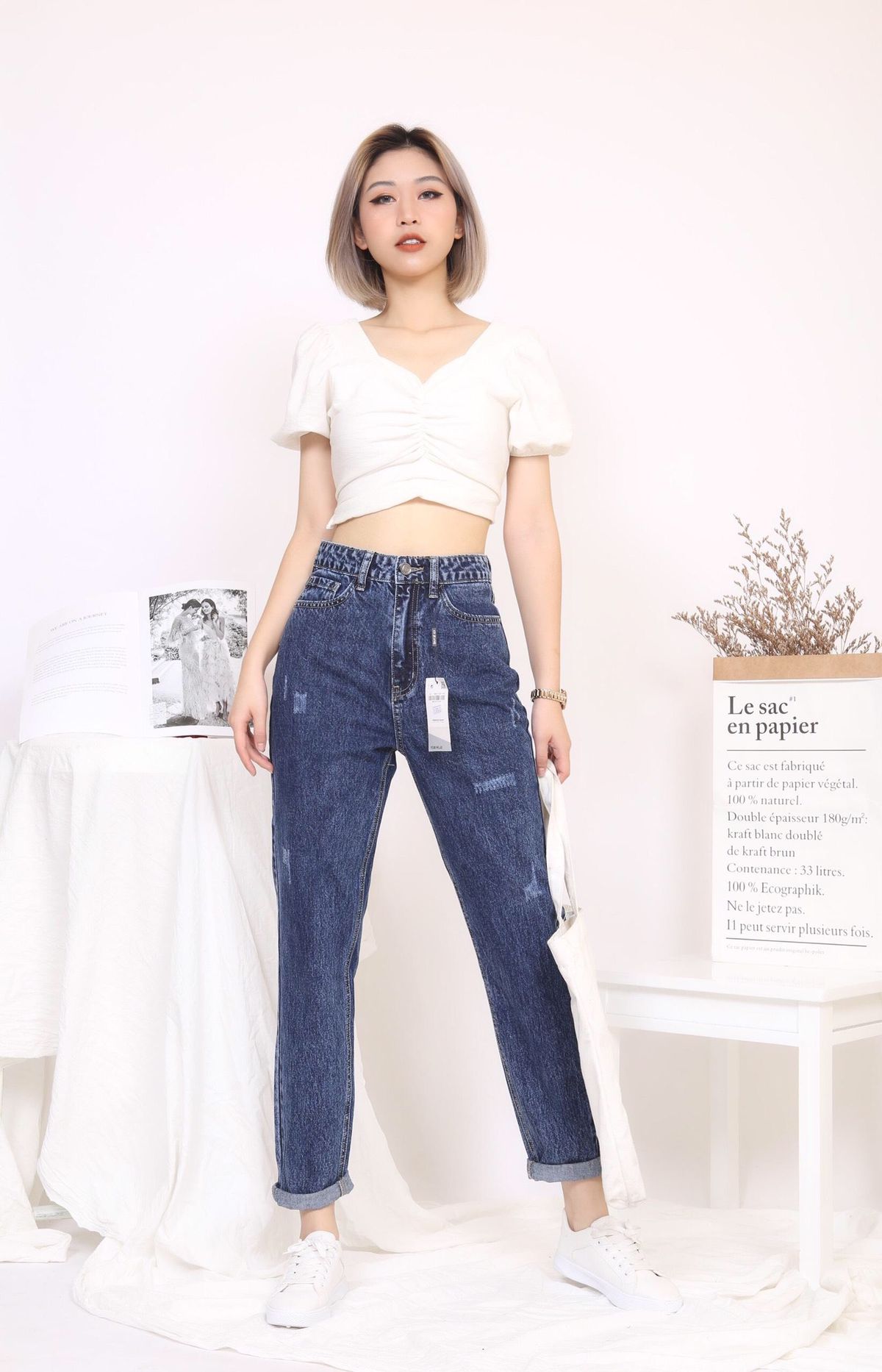 - Dáng quần: Quần Boyfriend dáng thụng cạp cao