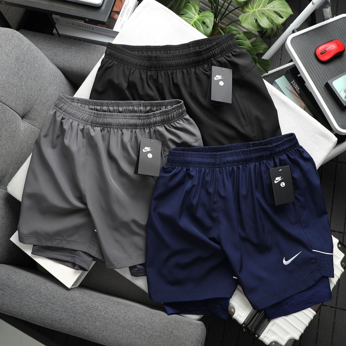 Quần đùi nam Logo xi giãn runing 2 lớp.
