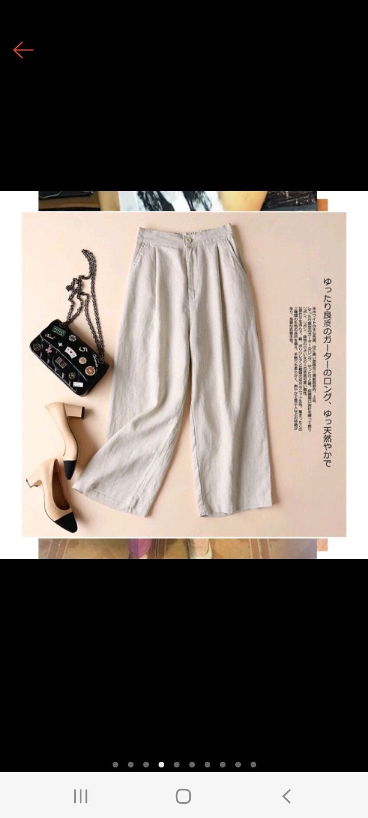 Đặc điểm quần dài ống rộng, cạp trước khuy khóa, có ly 2 bên và túi chéo, cạp chun phía sau