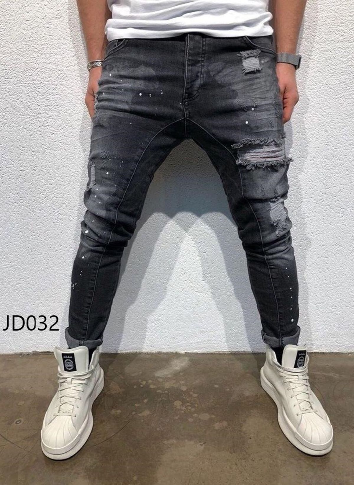 JD032 - Quần Jean Dài Nam Was Rách Co Dãn
