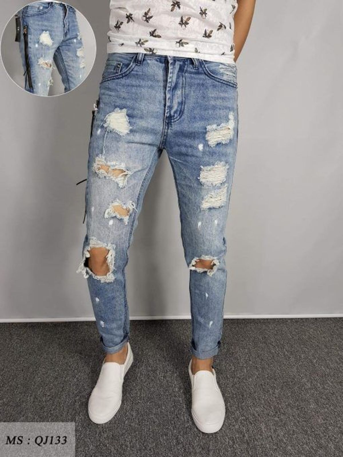 Quần Jean Nam xanh trắng vá 003 giá sỉ/bán buôn