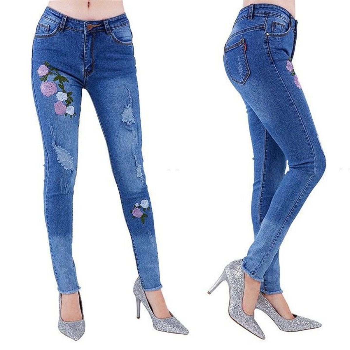 quần Jean thêu hoa cự xinh Chất liệu jean co giãn Size : 26,27,28,29,30,31,32 Màu : như hình , hình chụp thật