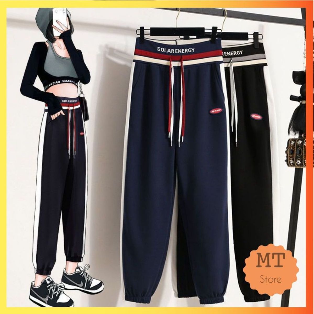 Quần Jogger thể thao bo gấu rút dây dáng rộng thời trang lót lông Solar Energy cho nữ