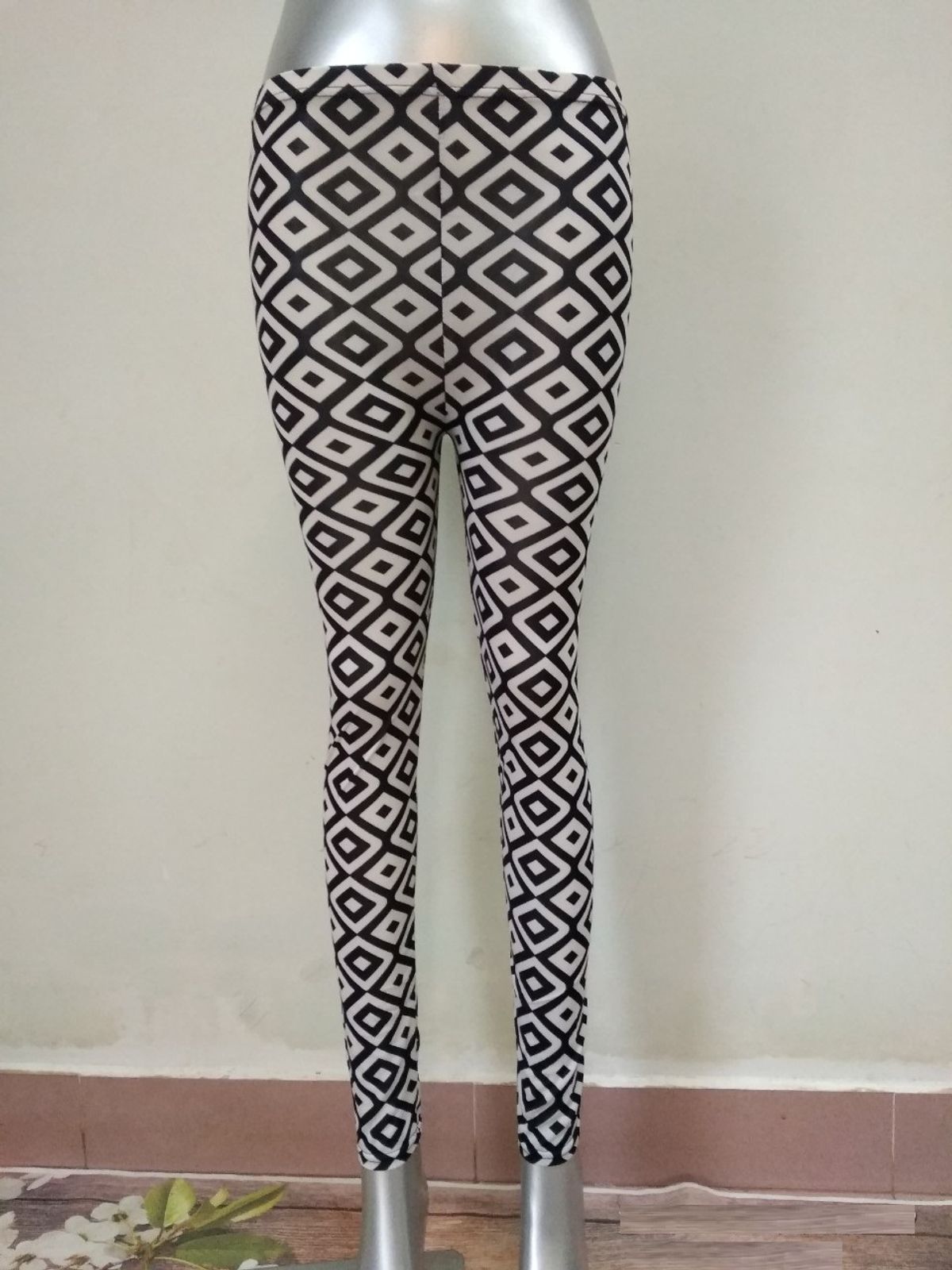 Chất cotton mềm mại. Mình vải mỏng nhưng dai sợi, co giãn. Họa tiết khối lạ mắt tạo cảm giác kéo dài đôi chân và che bớt khuyết điểm. Phù hợp phối cùng áo dáng dài (phủ mông) form rộng.