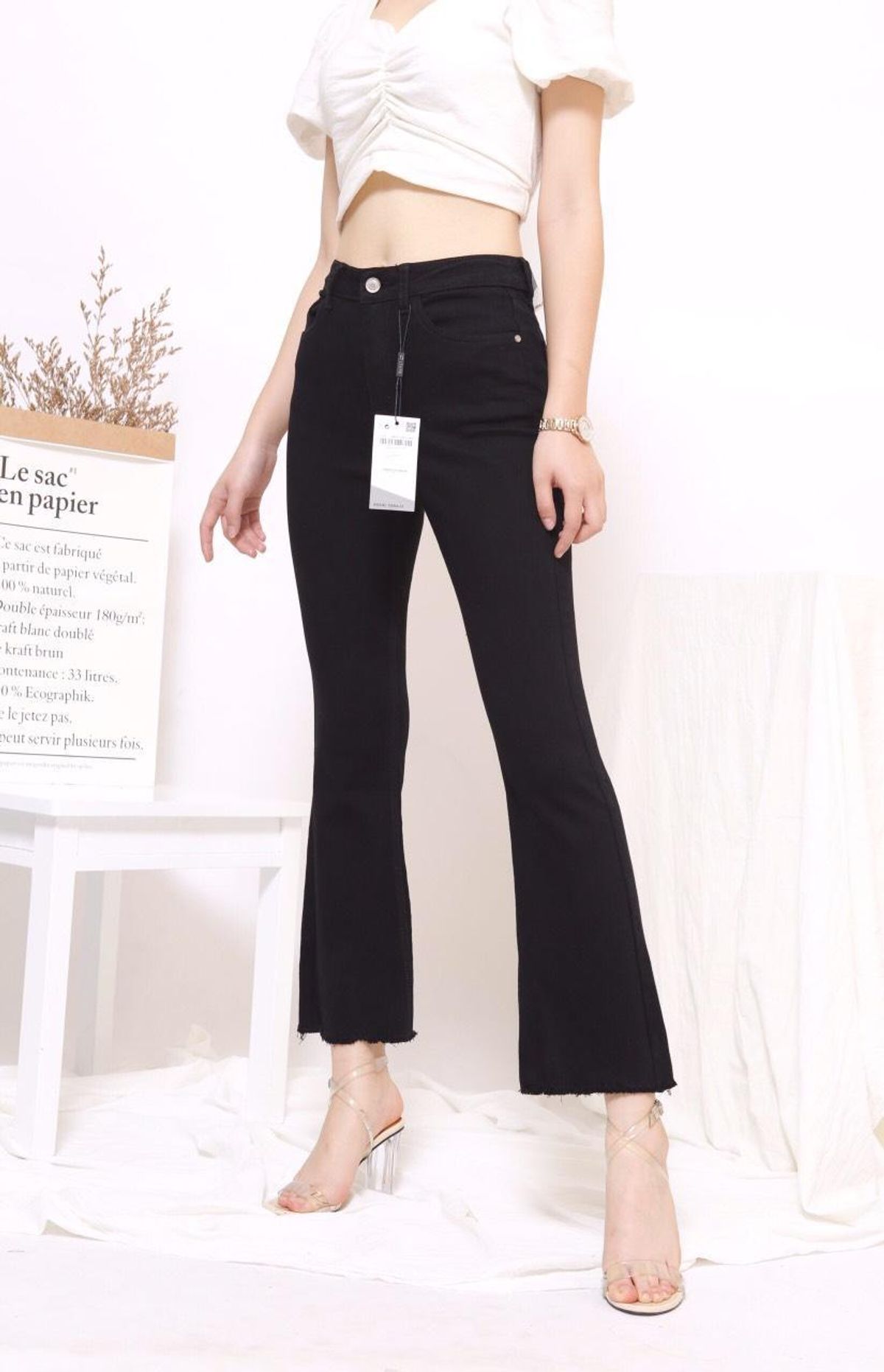 Quần loe đen cắt gấu siêu chất