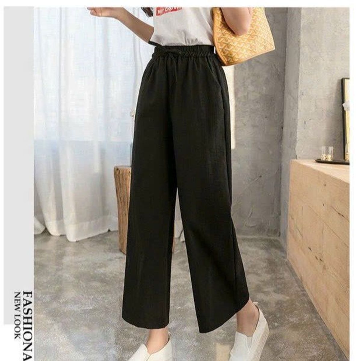Quần Ống Rộng Nữ Có Cạp Chun Chất Đũi Thoải Mái Quần Ống Suông Lưng Eo Siêu Đẹp Form Rộng Hàng Hot Trend-HTM FASHION