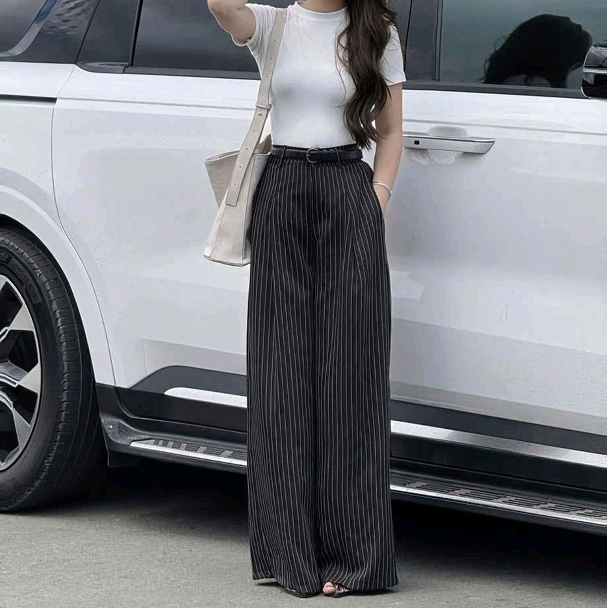 -Quần tây nữ hack dáng,có phối túi 2 bên, suông dài 100-102cm,chiều rộng ống 28cm