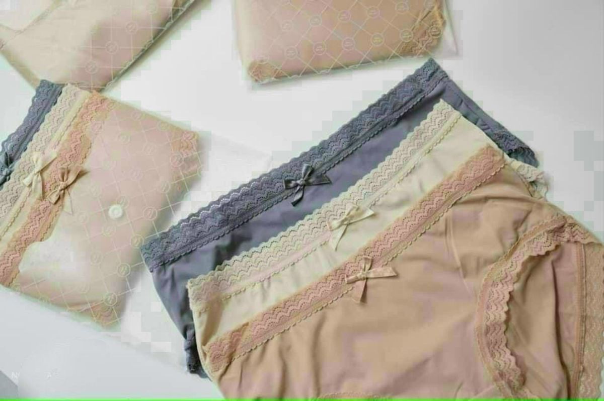 Quần ví siêu hot mới về hàng sl 1 set ví gồm 3 chiếc đủ màu như hình Quần Lót Chất Đúc Su Phối Nơ Viền Ren Mát