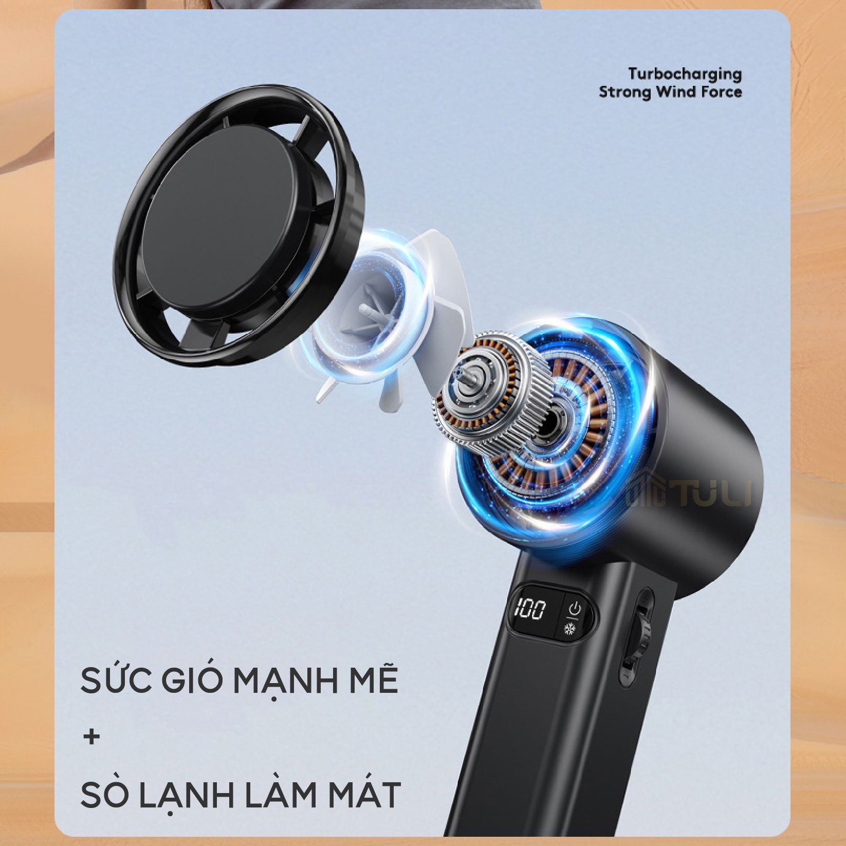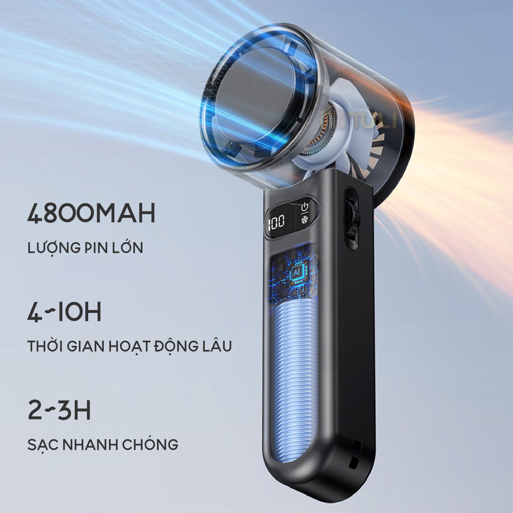 - Tên sản phẩm: Quạt Mini Cầm Tay Có Sò Làm Lạnh TL-QCT02, 4800mah, 100 mức độ gió, tích điện, tiện lợi, BH 12 tháng