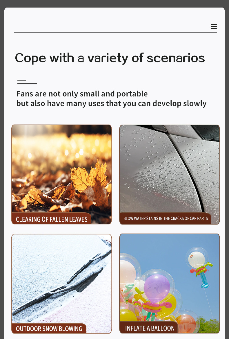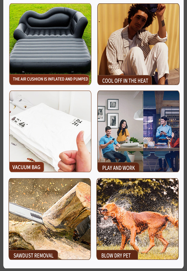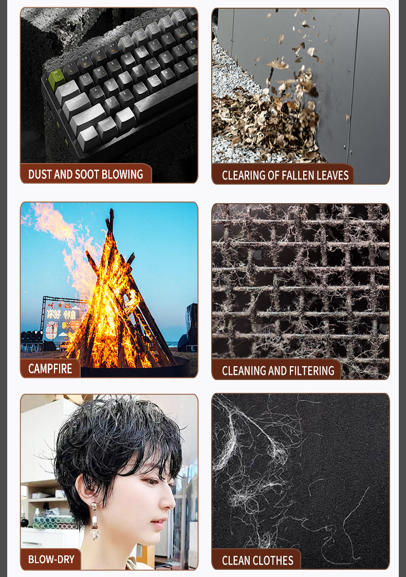 Ứng dụng đa năng: Máy thổi khô có thể được sử dụng cho nhiều mục đích khác nhau, bao gồm thổi bàn phím, đốt lửa trại, đốt than, sấy khô ô tô và vật nuôi, v.v.