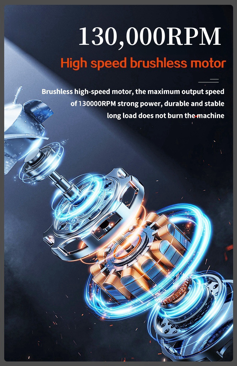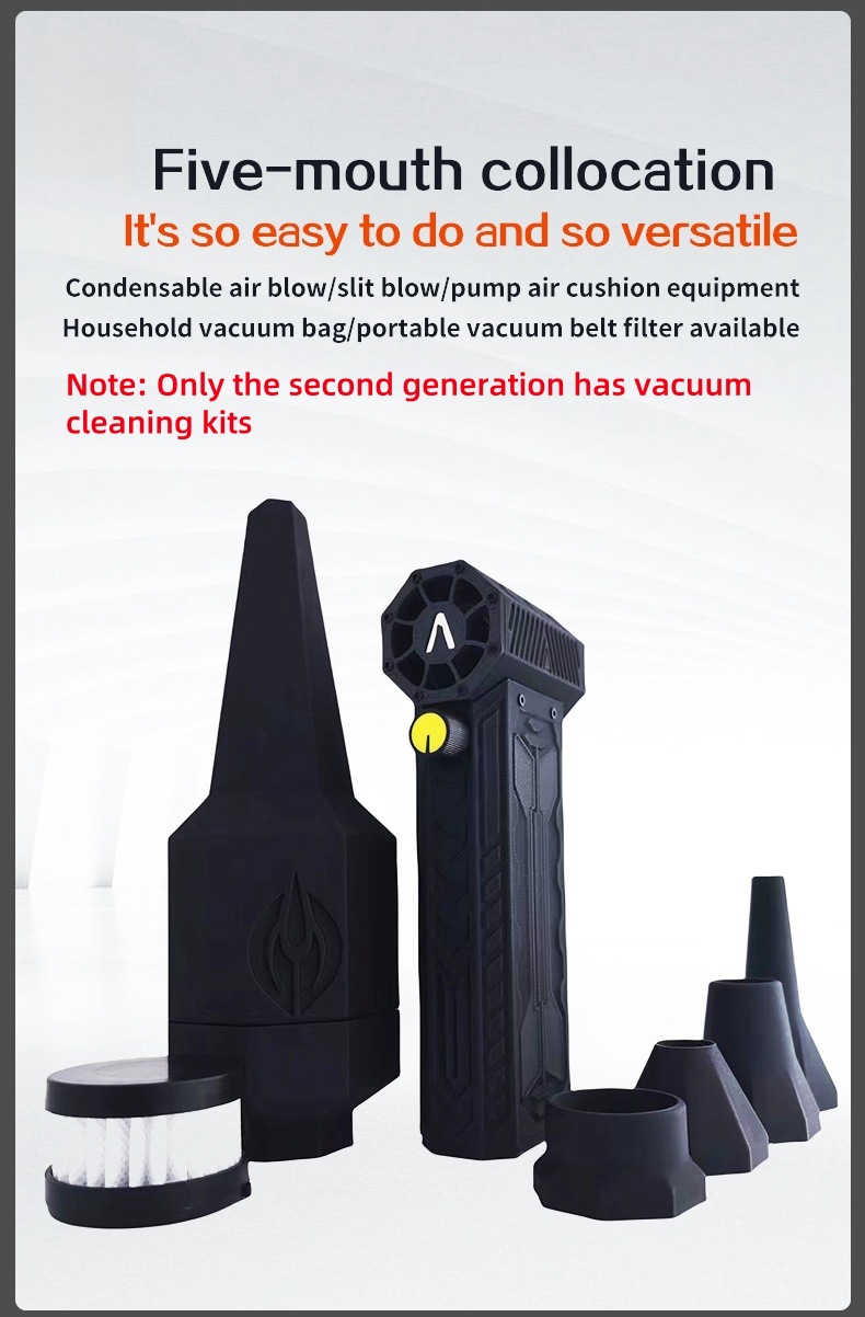 Quạt tuabin mạnh mẽ 130000 vòng/phút: Được trang bị quạt tuabin mạnh mẽ hoạt động ở tốc độ 130000 vòng/phút, máy thổi khí mini phản lực khô tốc độ cao này tạo ra lực gió mạnh để làm mát nhanh chóng.