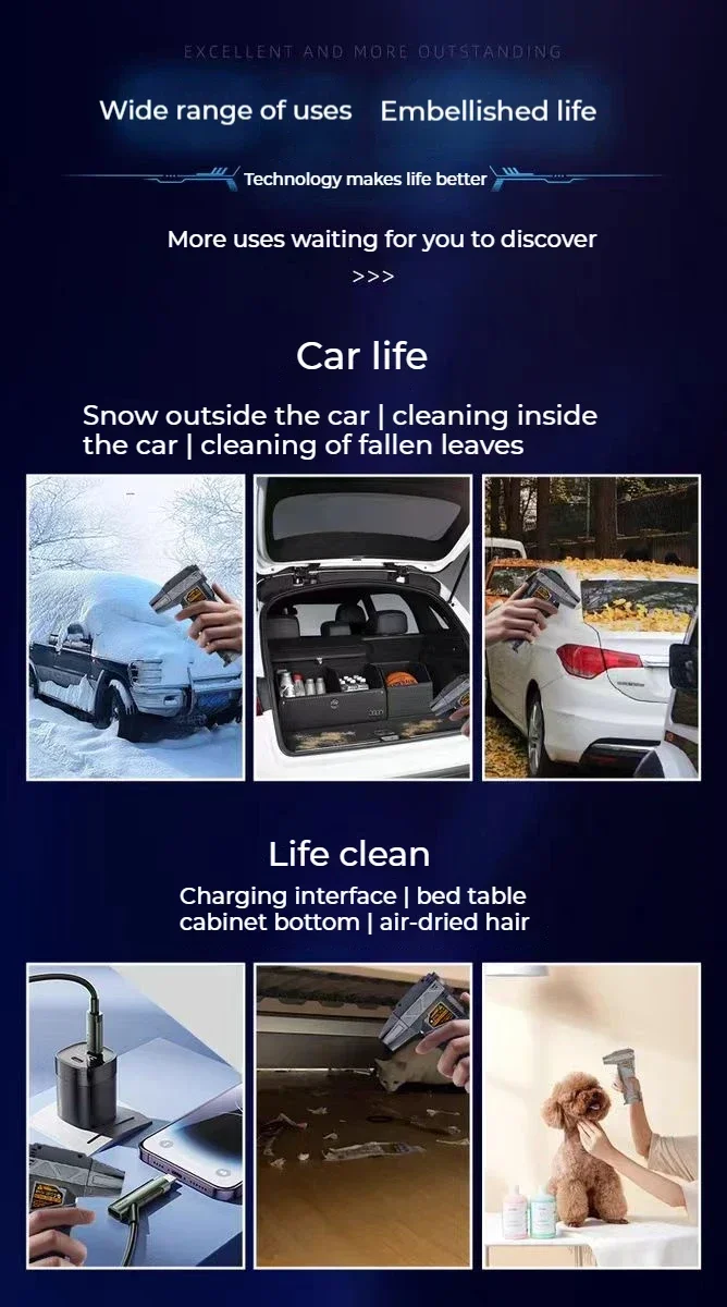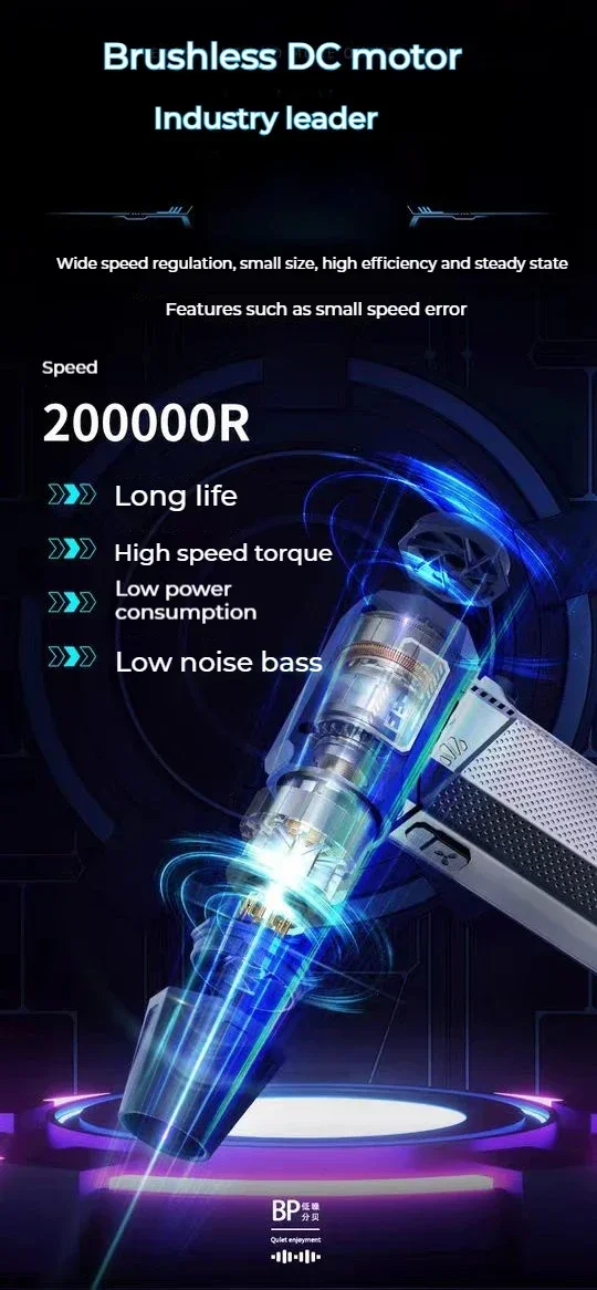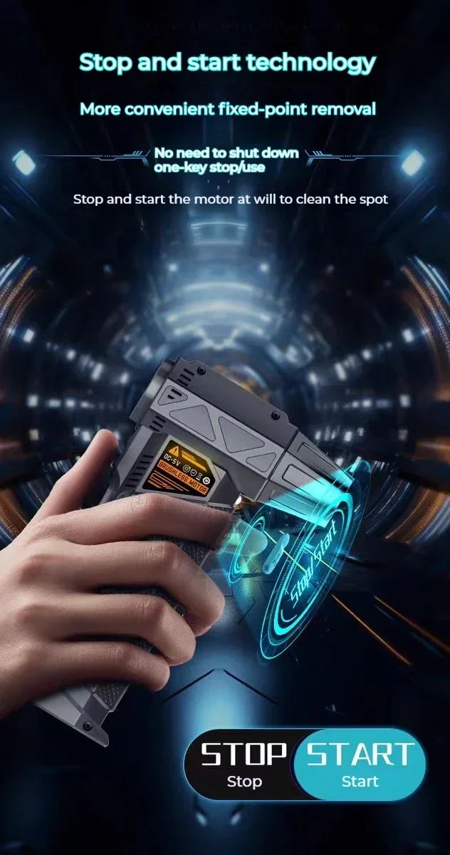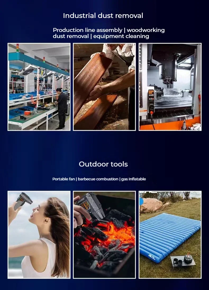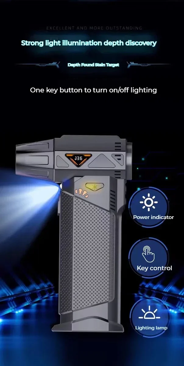 Hiệu suất tốc độ cao mạnh mẽ: Sử dụng động cơ DC không chổi than, máy thổi khí cầm tay đạt tốc độ đầu ra ấn tượng lên tới 200.000 vòng/phút. Điều này tạo ra luồng khí vượt trội lên tới 60 mét mỗi giây, tương đương với cơn bão cấp 16, mang lại sức thổi vượt trội và hiệu suất tốt ngay cả cho những công việc vệ sinh khó khăn nhất.
