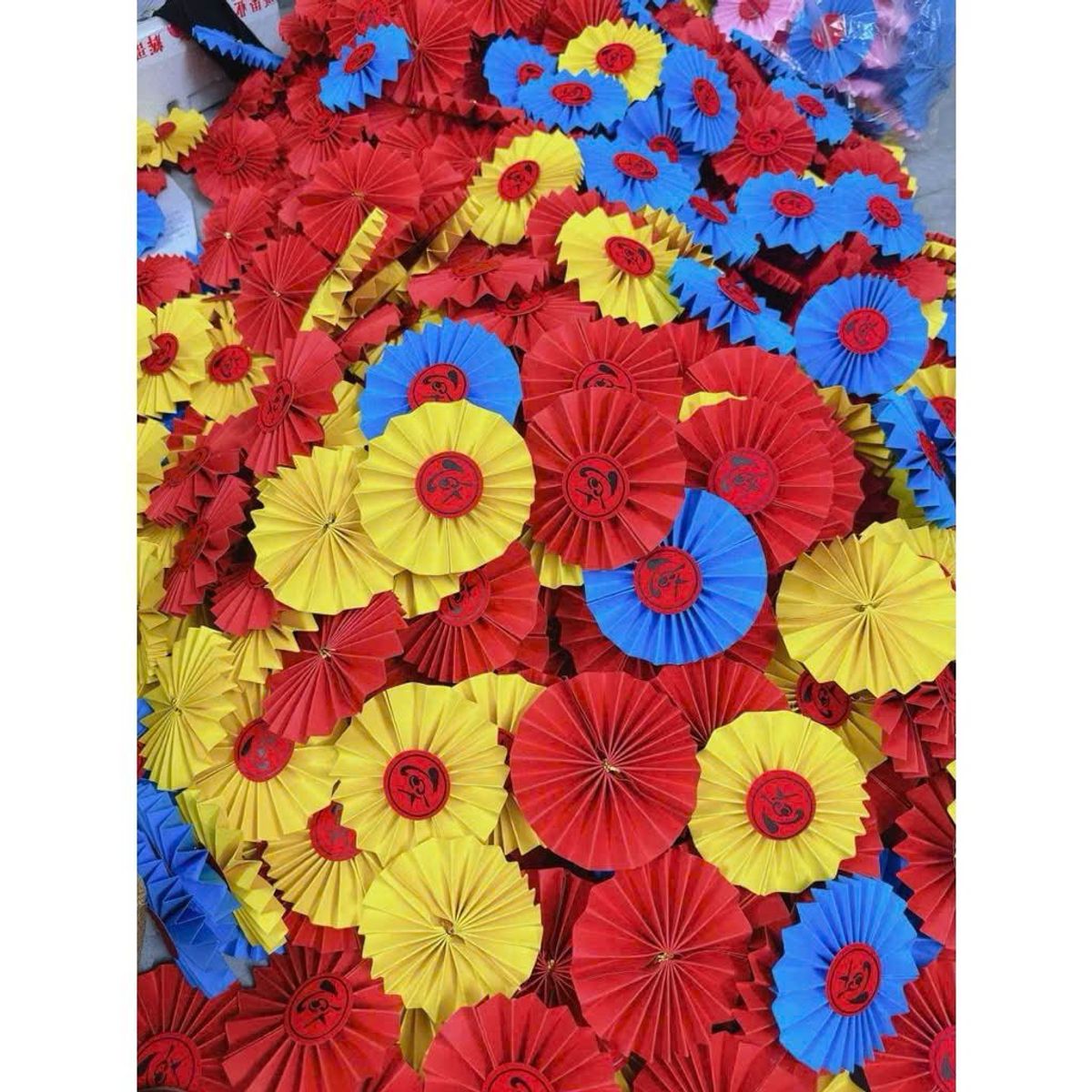 QUẠT XẾP TRÒN DÁN CHỮ ĐỎ (10cm)TRANG TRÍ TẾT