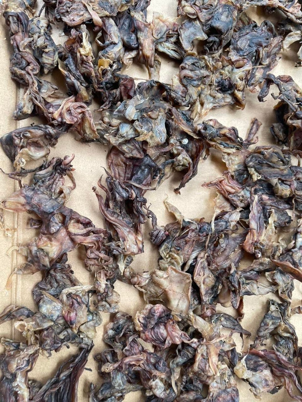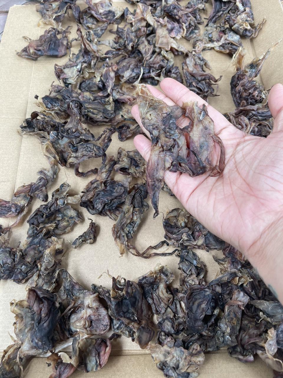 Râu mực bên là hàng nguyên chất chưa qua sơ chế nên râu có màu nâu đậm+ vị mặn.