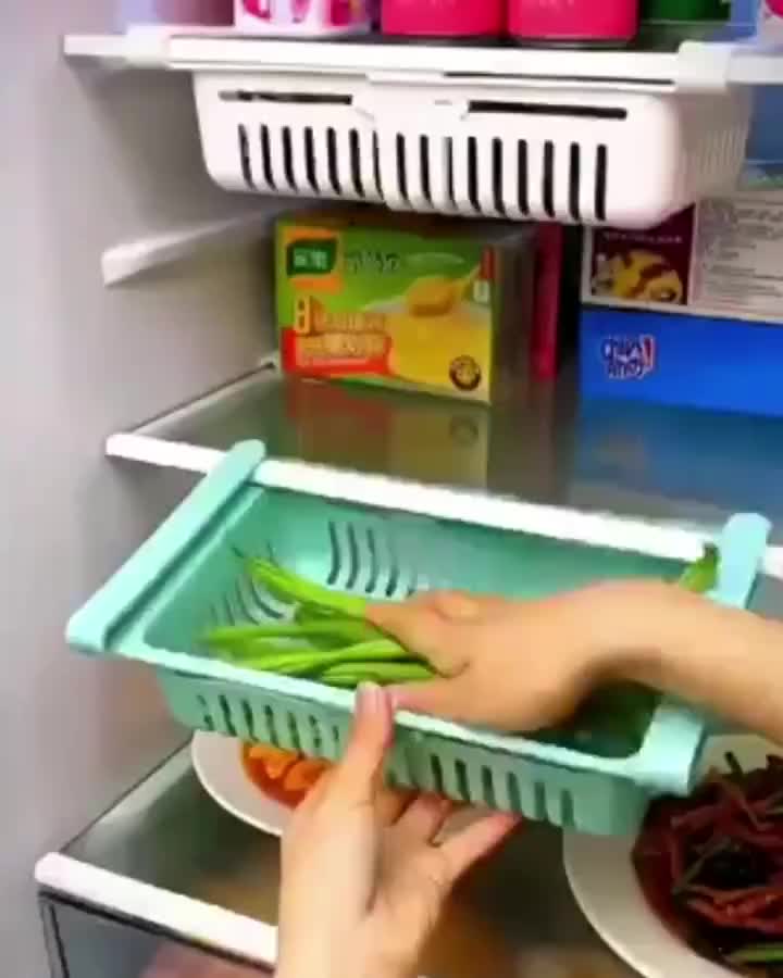 – Rổ kéo đựng đồ tủ lạnh tiện lợi có thể thay đổi kích thước phù hợp với không gian trống của tủ lạnh, tiết kiện diện tích