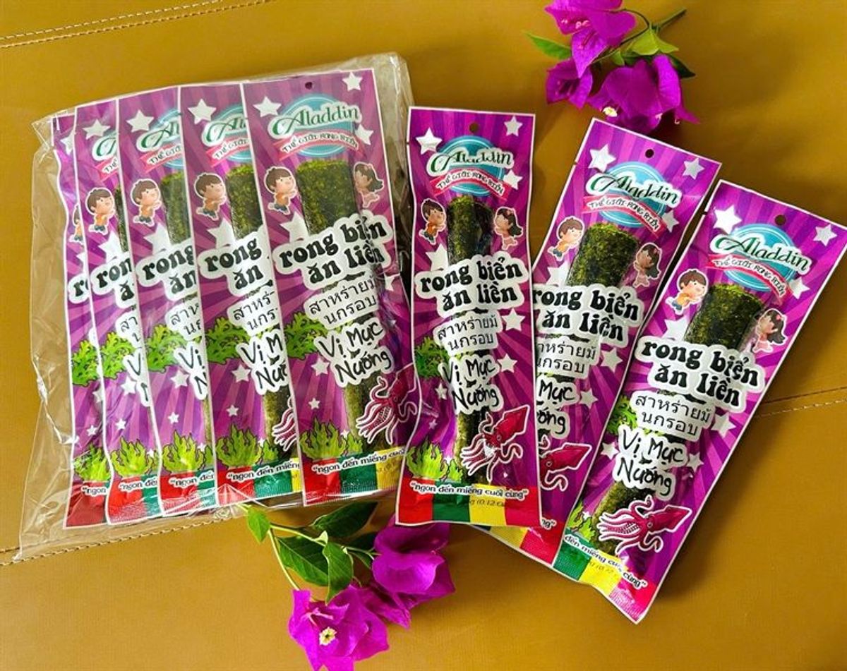 Rong Biển Ăn Liền Aladdin Máu Tím Vị Mực Nướng (Thùng 60 Lốc x 10 Cây) giá sỉ - giá bán buôn