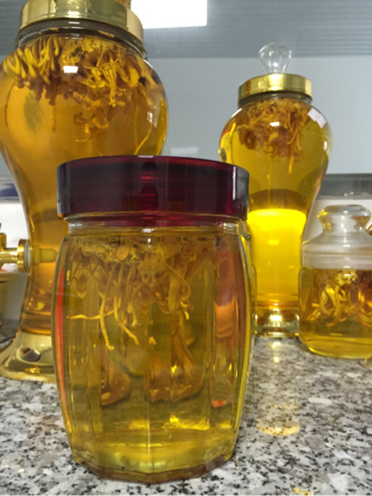 Đông trùng hạ thảo được ngâm cùng với rượu nếp Long An nguyên chât, không gia tăng hay thêm tạp chất. Công dụng: tráng dương, bổ thận, tăng cường sinh lực Giá bán: 1trđ/lít