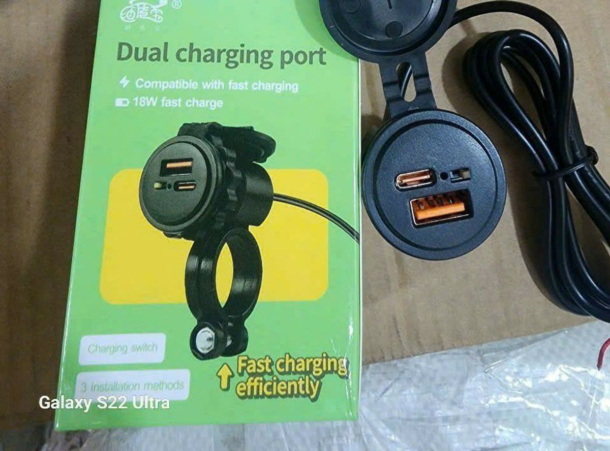 Sac điện thoại trên xe máy- 2 cổng usb + typec kiểu 2