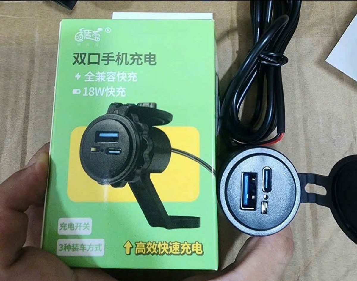 Sac điện thoại trên xe máy 3352- 2 cổng usb + typec