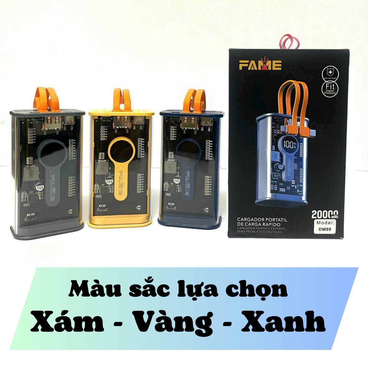 - Sạc dự phòng FAME với dung lượng 10.000 mAh & 20.000 mAh là giải pháp hoàn hảo cho việc sạc điện thoại, máy tính bảng, và các thiết bị di động khác khi bạn đang di chuyển.
