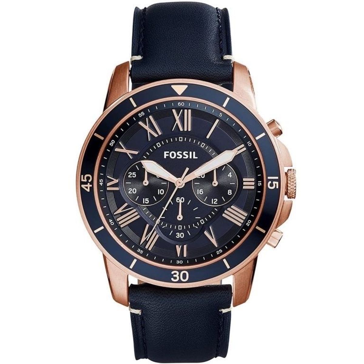 ⚜️Mẫu Fossil dây da xanh navy phiên bản da trơn phong cách thời trang nam tính với lối thiết kế tính năng Chronograph (đo thời gian) trên nền mặt số lớn .