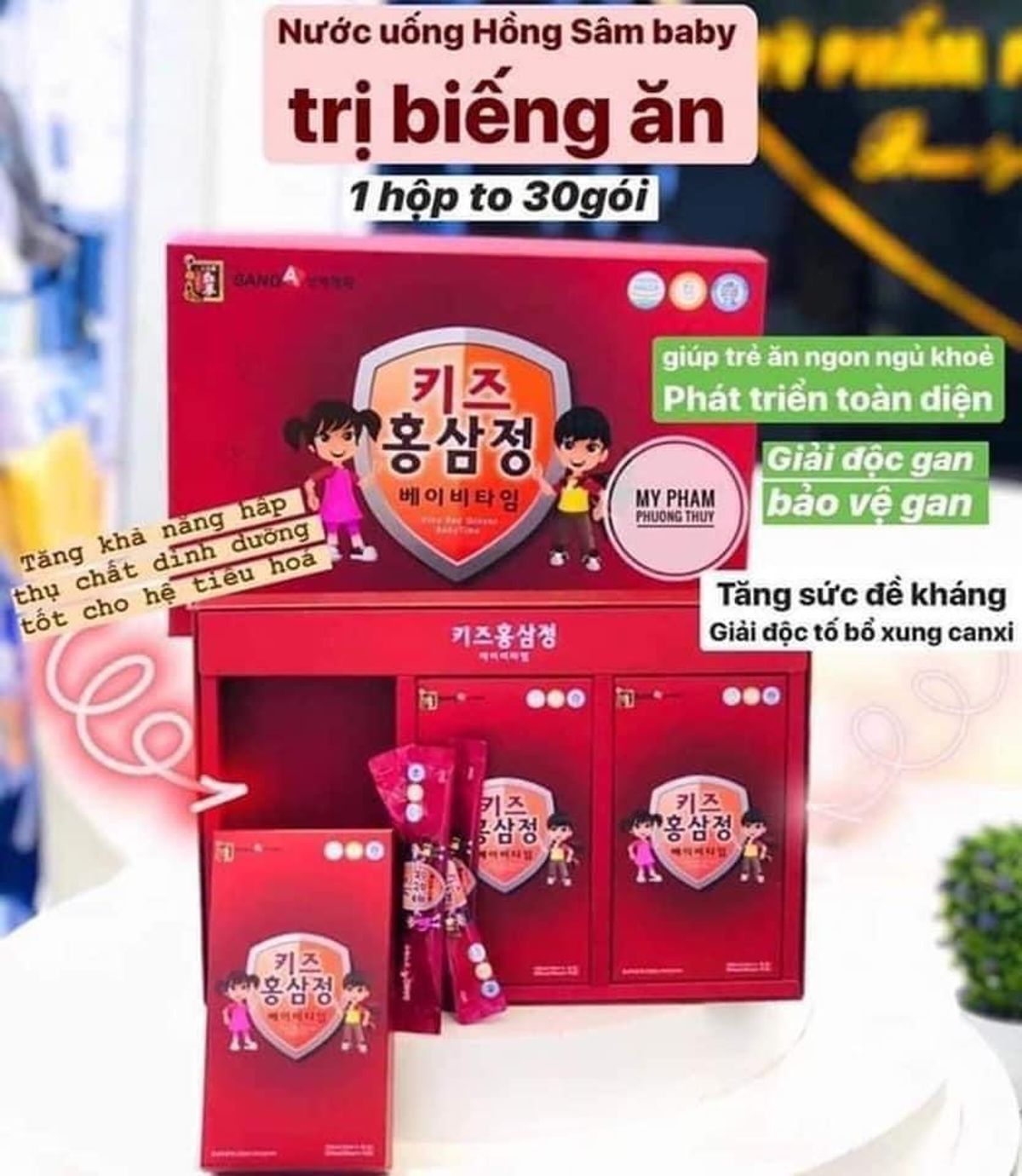 Được kết hợp giữa Hồng sâm cô đặc với các thành phần đông y bổ dưỡng như Nhung, Quế, Mật ong rừng, Vitamin…Sản phẩm giúp bé tăng đề kháng cơ thể, ăn ngon ngủ kỹ hơn, phát triển chiều cao, trí não, cân nặng ...thật sự hiệu quả và đang đc các mẹ con con dùng rất nhiều nhé