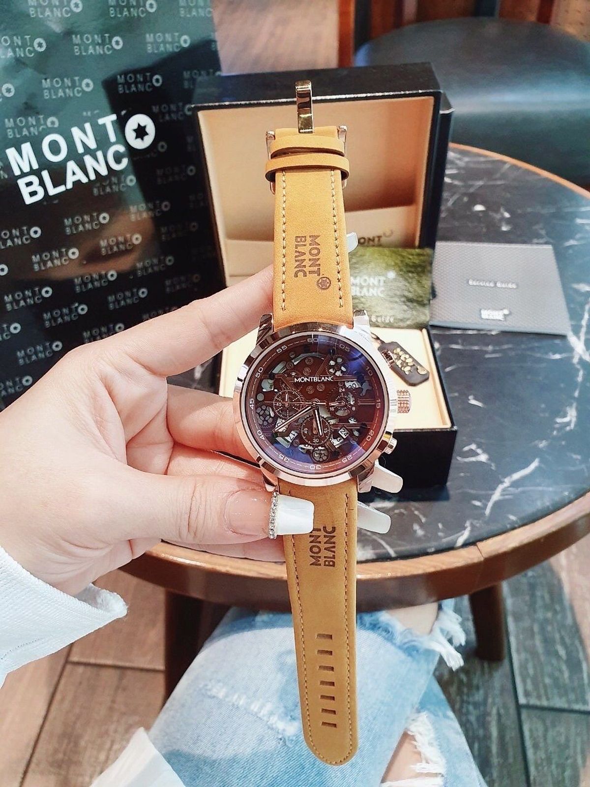 SĂN SALE ĐỒNG HỒ NAM TRUNG CẤP MONBLAN DÂY DA MẶT CHONOGRAP CHẤM ĐEN giá sỉ/bán buôn