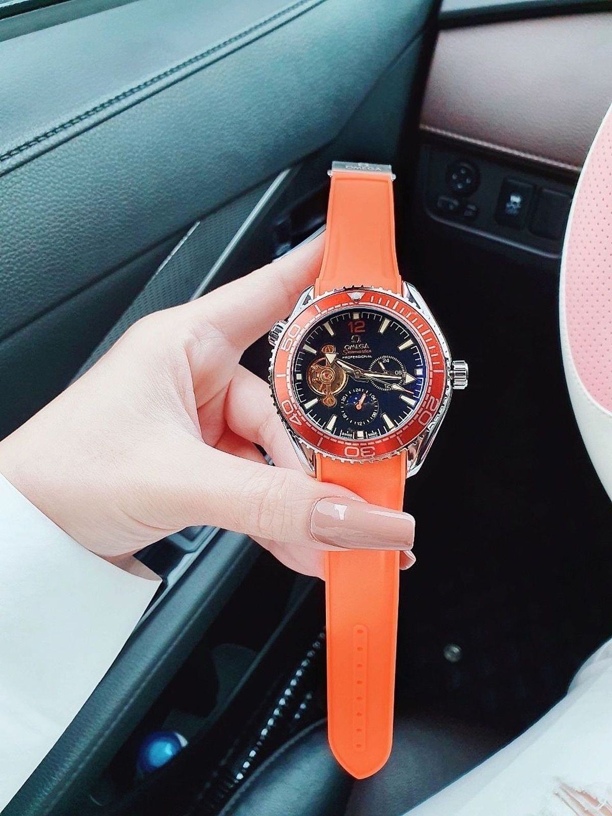 SĂN SALE LỚN ĐỒNG HỒ NAM TRUNG CẤP ÔMAGE CƠ DÂY CAO SU MÀU CAM giá sỉ/bán buôn