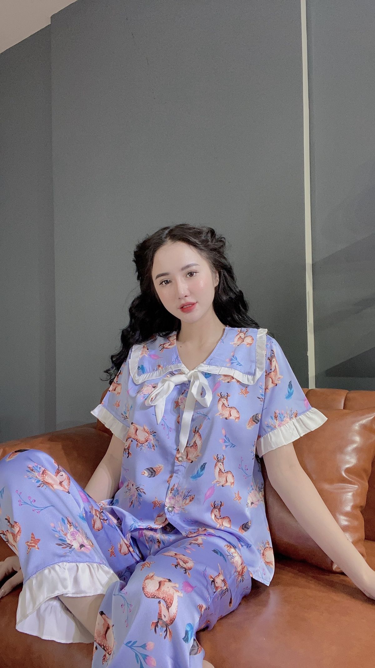 Dài cộc pizama Satin cổ vuông đẹp tuyệt vời phom chuẩn 45-60kg mặc hàng y hình