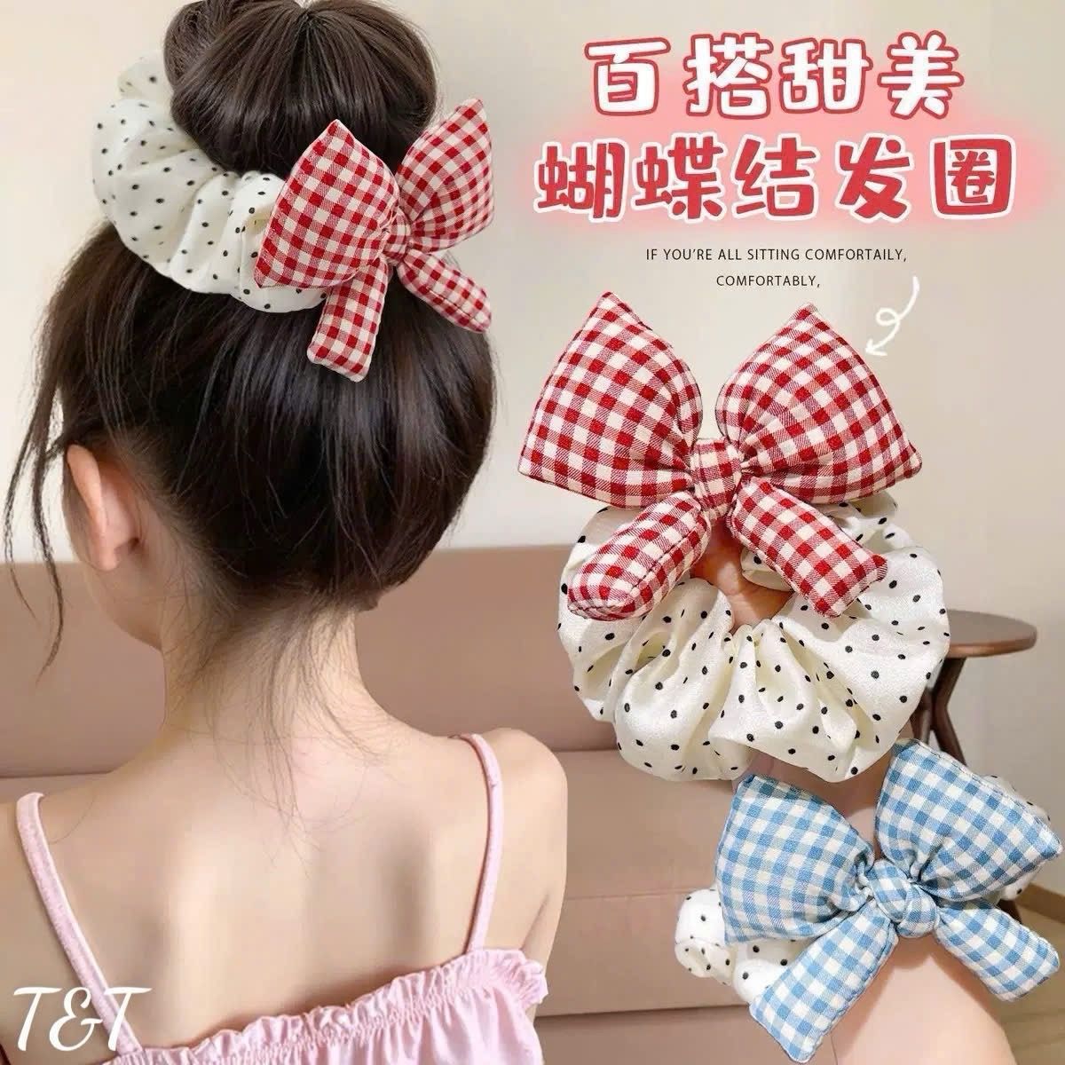 Scrunchies chấm bi nơ phồng lố 10d___13k/dây