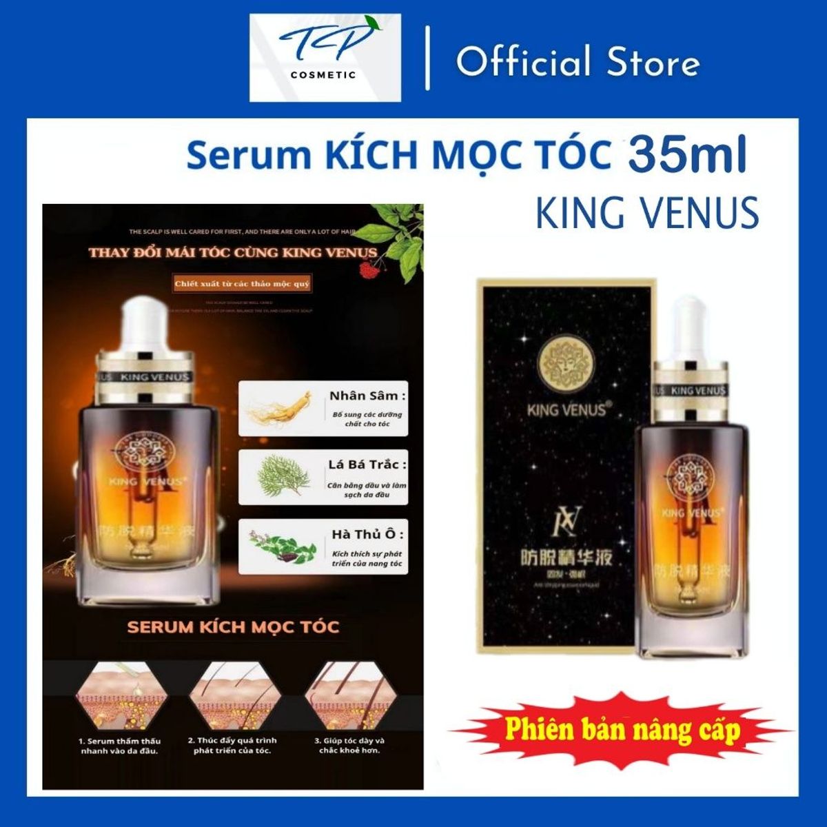 (Phiên bản nâng cấp) Serum Kích Mọc Tóc King Venus 35ml - Kích Thích Mọc Tóc Con