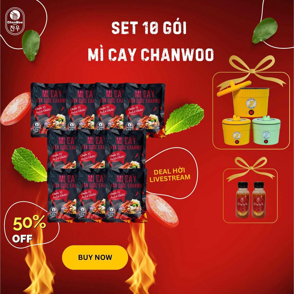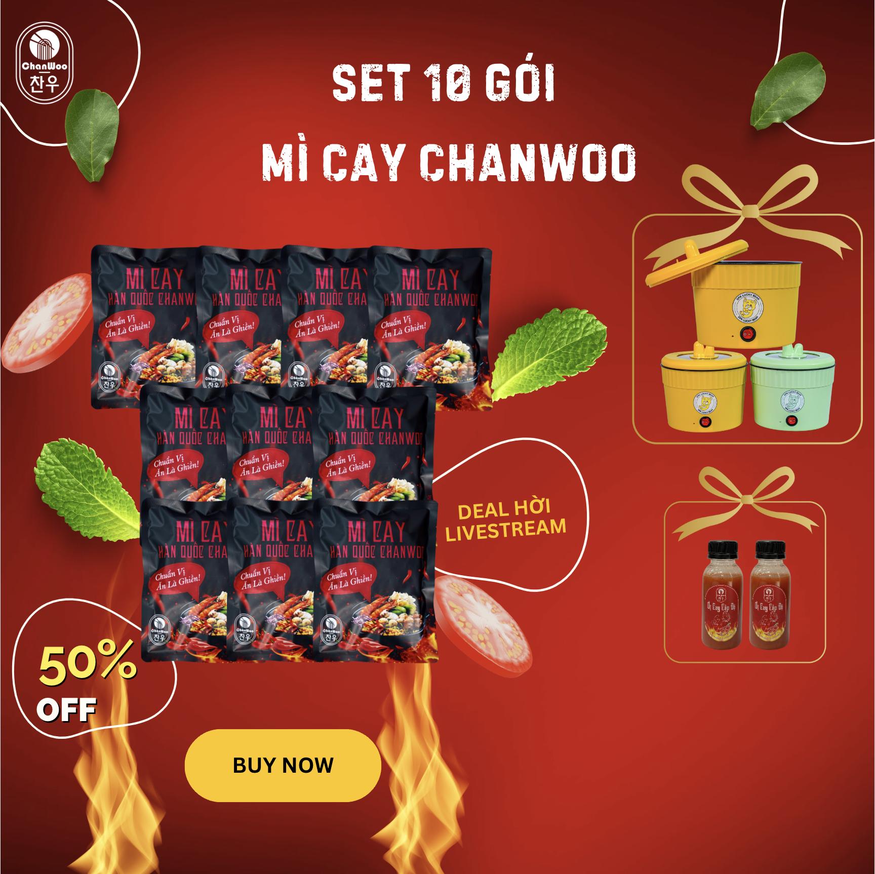 Set 10 Gói Mì Cay Kèm Gói Súp Gia Vị CHANWOO Bao Gồm:
