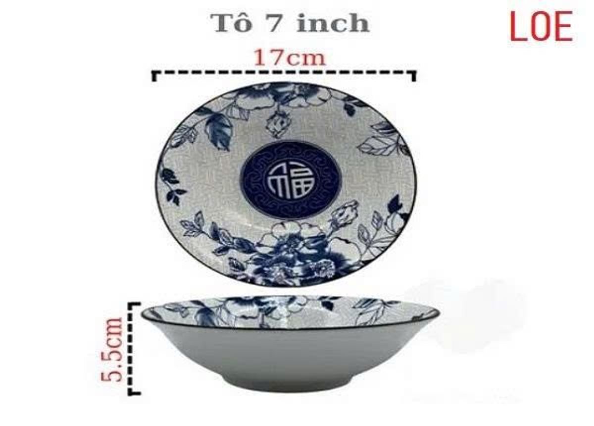 SET 10 TÔ SỨ LOE HOA XANH CHỮ PHÚC 17cm