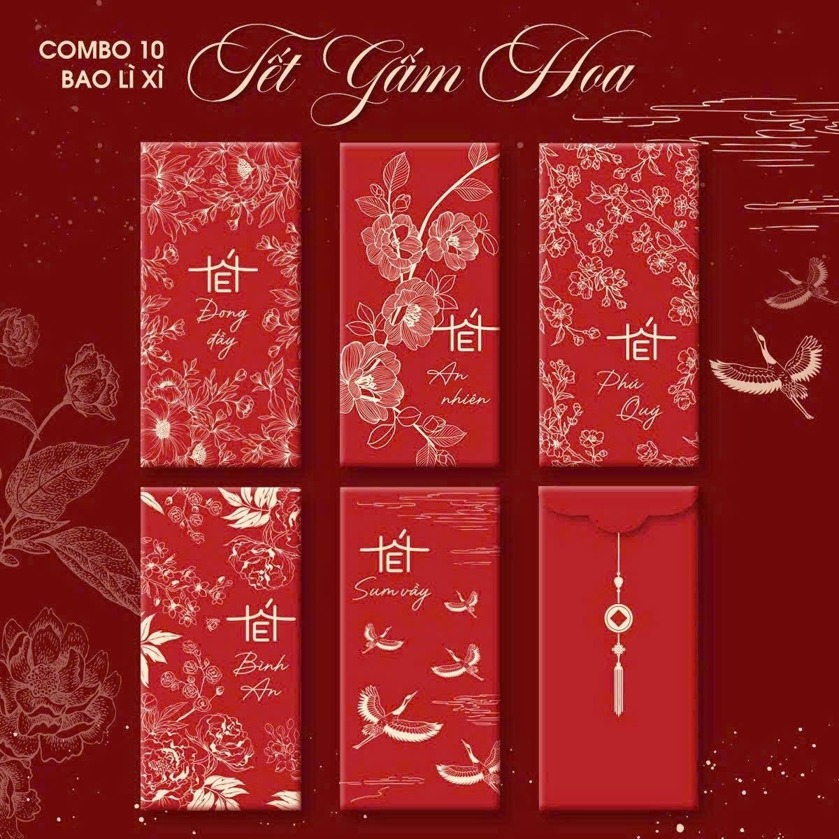 Set 100 Bao Lì Xì Tết Gấm Hoa giá sỉ/bán buôn