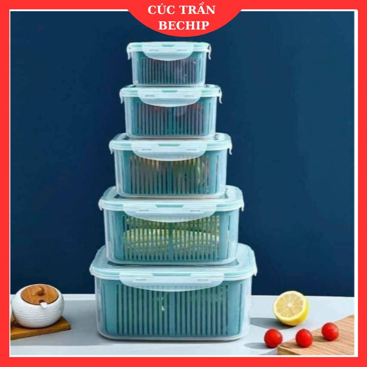 • Set 5 hộp đựng đồ tủ lạnh đa năng 2 lớp cao cấp có nắp đậy