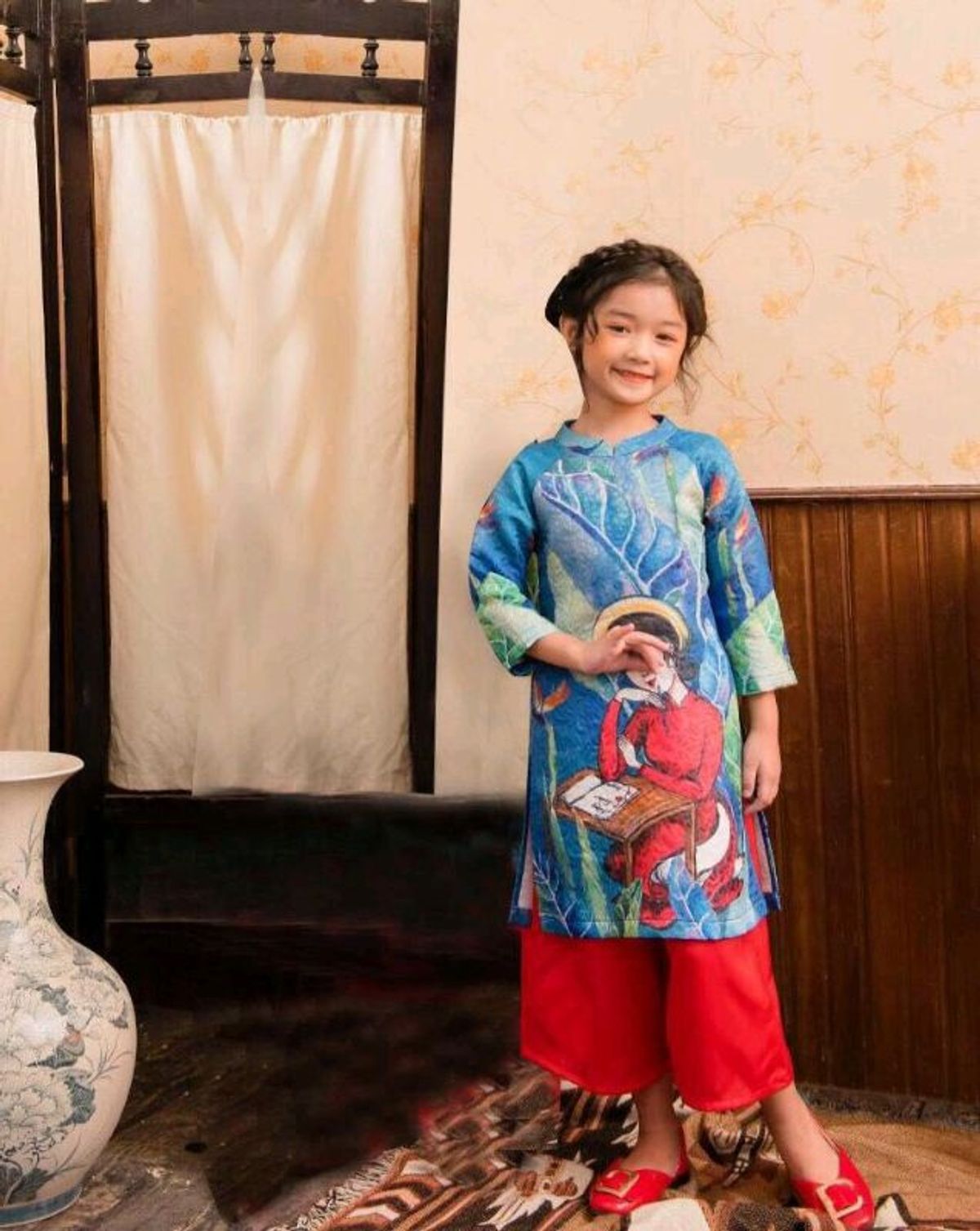 hàng như hình có sẵn set áo dài kèm quần bao đẹp có màu đỏ, xanh cho bé