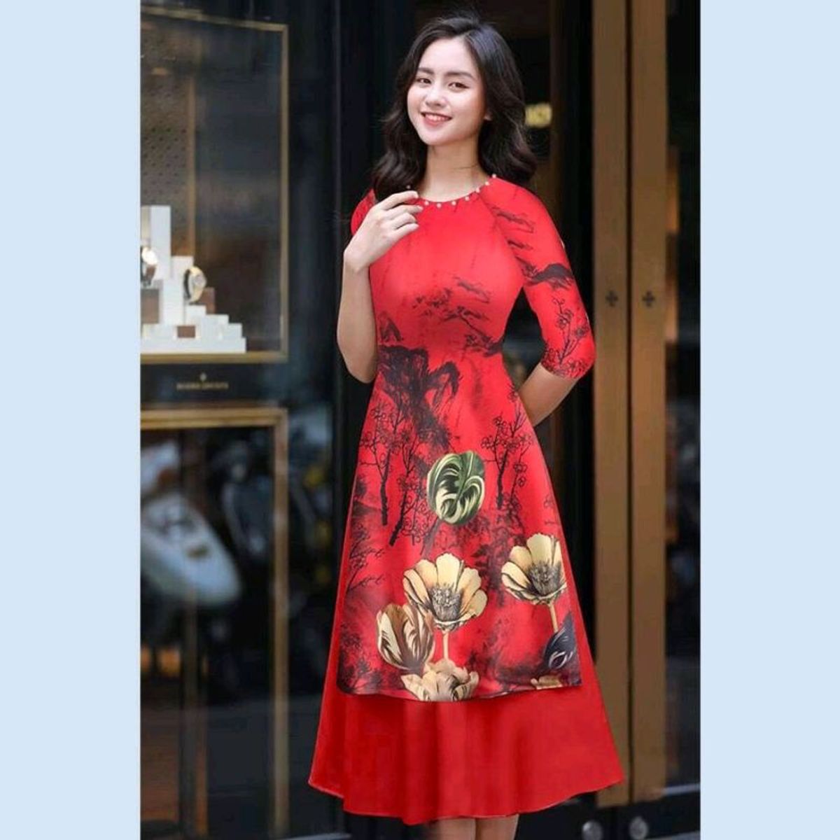 MẪU MỚI hàng như hình có sẵn set áo dài kèm váy đính cổ cườm bao đẹp hàng cao cấp