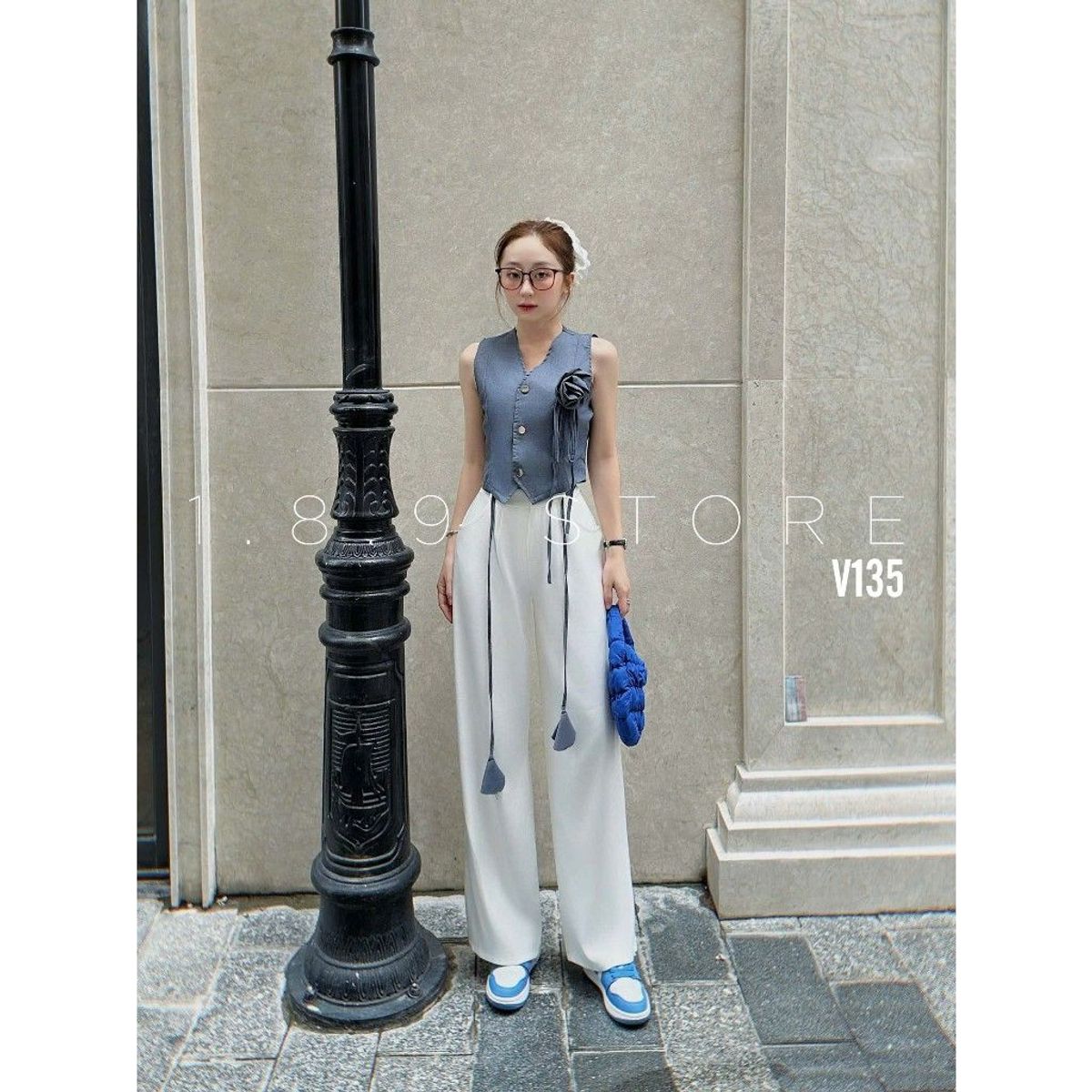 SET ÁO GILE XƯỚC ĐÍNH HOA VÀ QUẦN SUÔNG CHẤT CHÉO HÀN KIỂU DÁNG THIẾT KẾ SANG CHẢNH