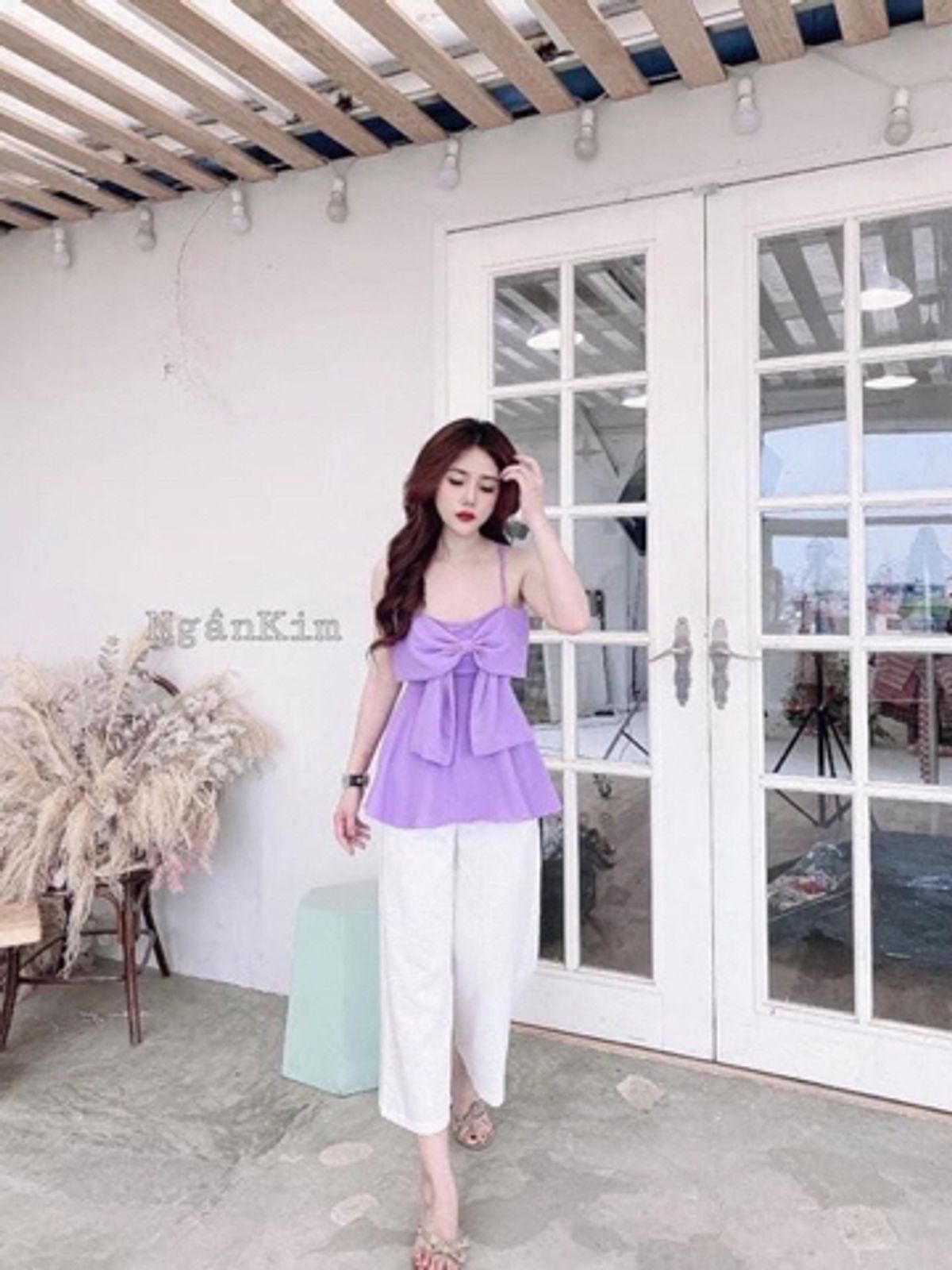 Set áo nơ quần ống rộng trắng giá sỉ - giá bán buôn