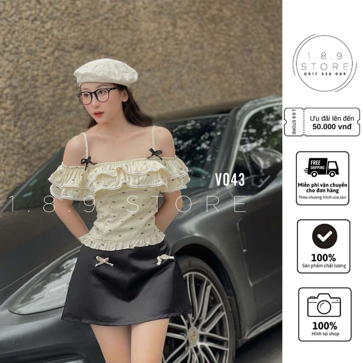 Set Áo Nơ Trễ Vai Chân Váy Có Lót Quần Trong , Sau Lưng Áo Có Chun Co Giãn