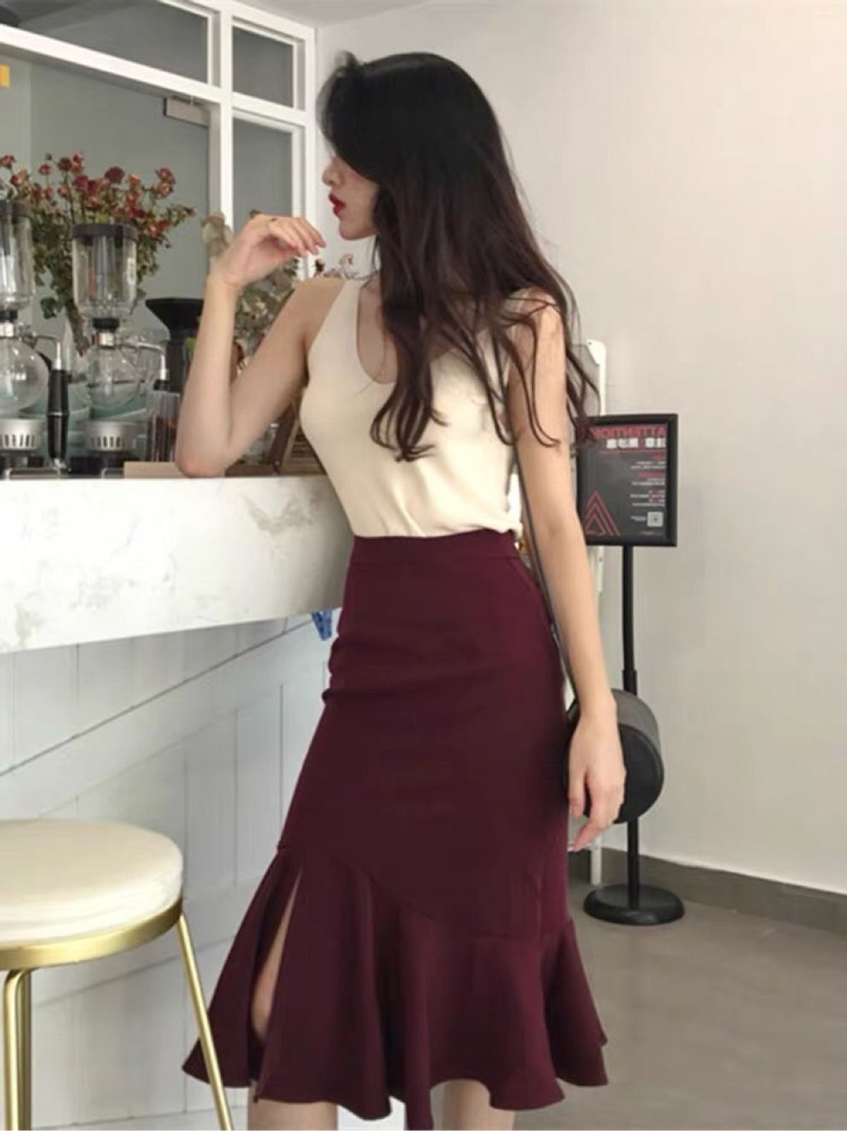 Sét áo khoét nách cổ tim mix chân váy xẻ đuôi cá dáng ôm